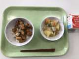 【献立】 しいらの揚げ煮丼 じゃが芋のさっぱり煮 牛乳 【材料】 米(山形) ...