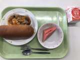 【献立】 こめこパン 夏野菜のグラタン すいか 牛乳 【材料】 なす(岩手) ...