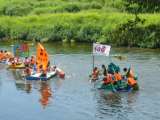 初出場ながら、5艇のいかだは2キロのコースを下りきり、無事にゴールすることができ...