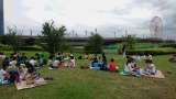 水の科学館の見学か終わり、昼ごはんです。科学館の前の芝生で食べました。