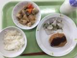 ご飯 かぼちゃコロッケ 野菜のゆかりかけ 大根と高野豆腐の煮物 牛乳 豚肉(埼...