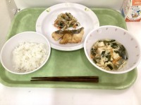 あぶたま丼野菜のごまみそ和えみぞれ汁牛乳