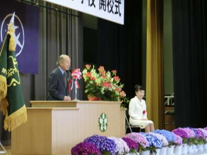式典の最後には、校歌を作ってくださった作詞者・作曲者の方に、校歌への思いをお話ししていただいたうえで、校歌の披露が行われました。