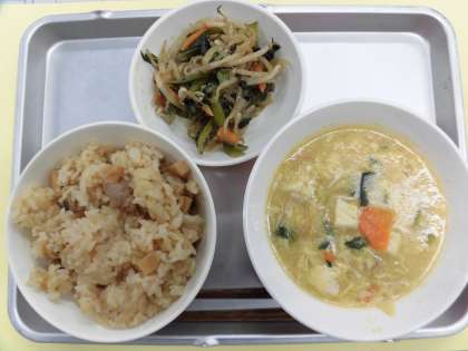 献立 中華おこわ 中華風コーンスープ 炒めナムル 牛乳