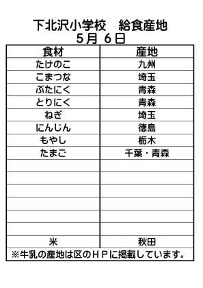 給食産地 5月6日