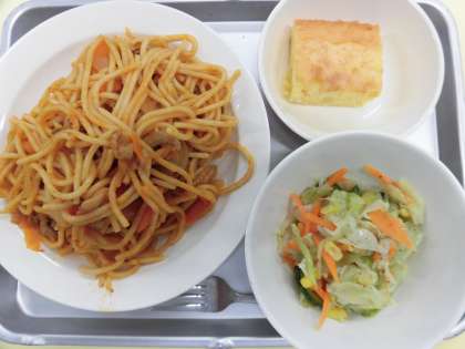 献立 ナポリタン コールスローサラダ パインケーキ 牛乳