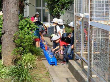 1年生が毎朝の日課にしていること・・・それは朝顔の鉢にお水をあげることです。