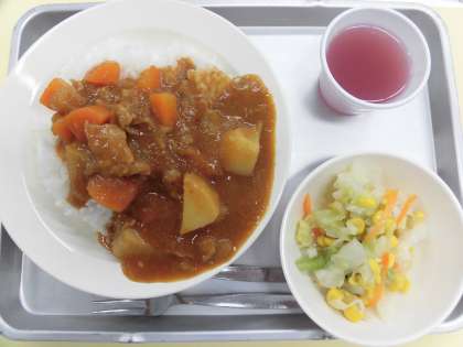 献立 カレーライス キャベツサラダ ぶどうゼリー 牛乳