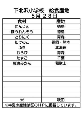 給食産地 5月23日