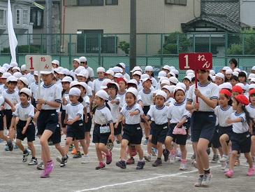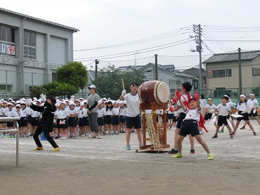 今朝は運動会に向けて、入場行進や応援合戦などの練習をしました。