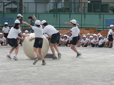 大玉送りの練習では、今日は白組が圧勝。紅組も息を合わせて、本番では大逆転してくださいね。