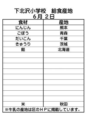 給食産地 6月2日 公開日 2016/06/03 更新日 2016/06/03 給食 献立 麦ごはん 鮭のみそマヨネーズ焼き きんぴら きゅうりと大根のごま風味 牛乳 ※写真取り忘れました。 いいね(0)