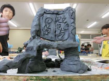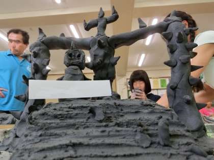 一人2キロの粘土を自由に切ったりねじったり・・・最後は写真に撮って保存しました。