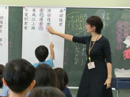 教科「日本語」の授業も行われ、児童たちは大きな声で読んだり、しっかり暗唱したりとがんばって学習に取り組んでいました。
