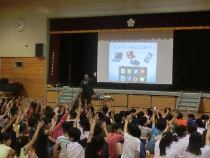 先週、4〜6年生は、セーフティ教室で「ネットリテラシー」について学習しました。インターネットの便利な点と注意しなければいけない点を学び、