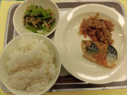 献立 ごはん 鯖のピリ辛ソース 切り干し大根の煮付け ごまあえ 牛乳