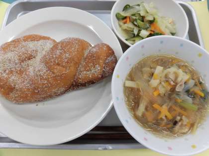 献立 白ごま揚げパン 春雨スープ 中華サラダ 牛乳