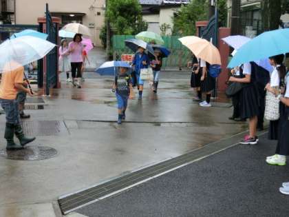 今朝は雨が降る中、梅丘中の中学生たちがあいさつ運動に来てくれました。下北沢小の代表委員・計画委員も校門に立ち、いっしょにあいさつ運動を行います。