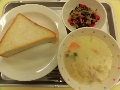 献立 シュガートースト コーンシチュー 大根とひじきのサラダ 牛乳