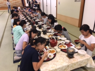 楽しく、嬉しくて、賑やかすぎました。夕食前にいくつか注意がありました。しっかり聞き、注意し合うのはさすがです。夕食のメニューを見て、早く食べたい!という声。どの子もおいしそうに食べていました。
