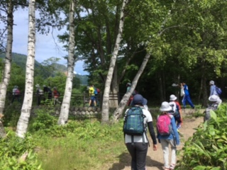 雨が上がり、ハイキングです。湯ノ湖の山側を歩いて、湯滝へ。
