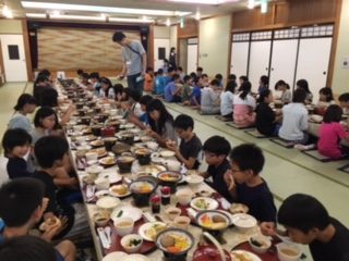 夕ご飯です。今夜はシーフードメニューでした。しっかり食べて、後片付けもしました。