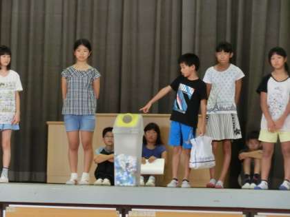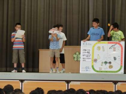 今朝は環境委員会と、保健給食委員会のみんなが、委員会発表をしてくれました。