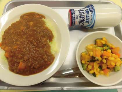 献立 ターメリックライス&キーマカリー パンプキンサラダ 飲むヨーグルト