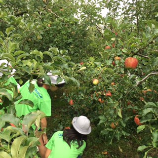 村めぐりでは、新しいリンゴの育て方を説明していただきました。イタリアの農法だそうです。リンゴ狩りをして、試食をして、リンゴジュースをなのみました。