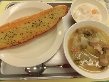 献立 ガーリックトース ポトフ フルーツのヨーグルトかけ 牛乳