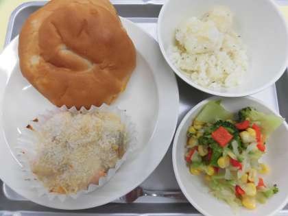 献立 パインパン 鮭のグラタン パセリポテト 野菜のマリネ 牛乳