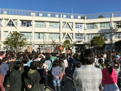 5年生の計画委員のメンバーが全校朝会で各委員会からの報告を行いました。これまでは6年生が報告していましたが、6年生の姿を見習いつつ、5年生も来年度に向けて最高学年になる意識が少しずつ高まってきています。今回は計画委員のメンバーが自主的に話し合い、メンバー全員で分担して報告する形にしました。全校の子どもたちに分かりやすいように上手に発表しました。これからの活躍に期待しています。