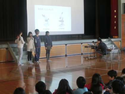 先週に引き続き、今朝は「バトミントンクラブ」「ゲームクラブ」「科学クラブ」「手芸・料理クラブ」の紹介が行われました。