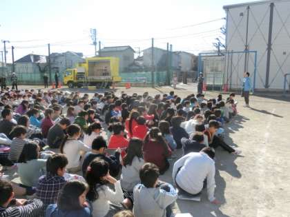 緊急地震速報が発表され、その後、地震に襲われた設定で避難訓練が行われました。静かに素早く避難することができたので、校長先生からお褒めの言葉がありました。