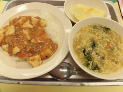 献立 麻婆ライス むらくも汁 くだもの(りんご) 牛乳