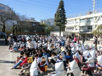 校庭で遊んでいる子や、給食を片付けている子、掃除中の子など、予告なしの訓練でしたが、みんなしっかりと安全を確保して避難することができました。