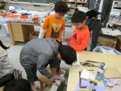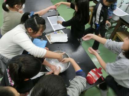 4月からどのクラブに入ろうか、見学の感想などをメモにとりながら8つのクラブを順番に回りました。中には実際に体験させてくれるクラブもあり、3年生はとても楽しそうです。
