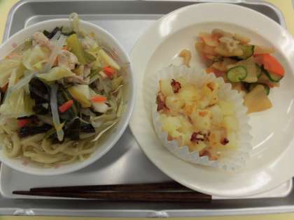 献立 たんめん ポテトピザ シャキシャキ野菜 牛乳