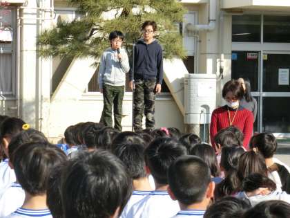 最後に計画委員の児童から、先日の代表委員会でのことや、各委員会から全校へのメッセージが発表されました。
