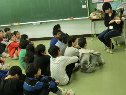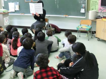 今朝は保護者のお母さん方が、1・2・5年生とくるみ学級のみんなへ、絵本の読み聞かせに来て下さいました。