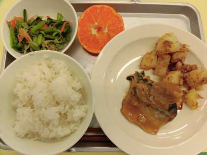 献立 ごはん さばの味噌煮 かつおじゃが おひたし 牛乳