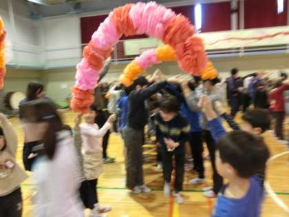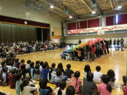 1年生から5年生まで、それぞれの学年が考えた出し物で、6年生に感謝の言葉や励ましの気持ちを送りました。