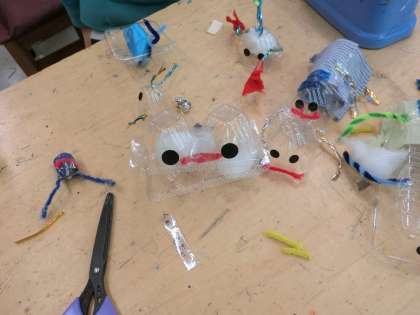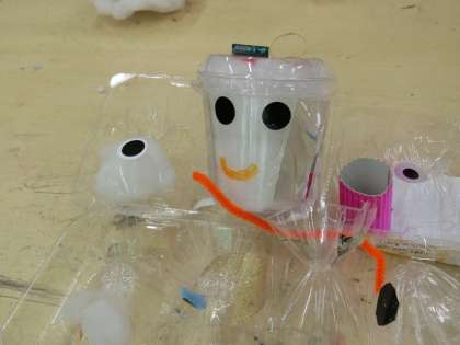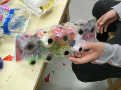 2年生は図工の授業で、透明な素材をいかした生き物作りをしました。