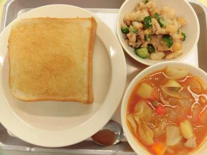 献立 シナモントースト ミネストローネ ビーンズサラダ 牛乳
