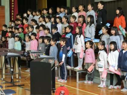 校歌の歌声の大きさと元気の良さでは、どの学年にだって負けません。