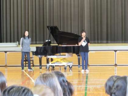 途中、4年生と6年生が上のパートと下のパートの違いを聴かせるために2学年だけで歌ったりしてくれました。