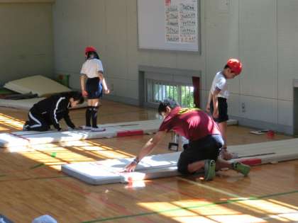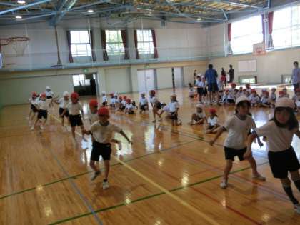 1年生は6年生とチームを組み、6年生のアシストを受けながらテストを受けました。