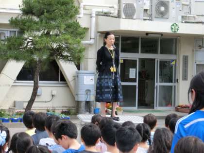 今朝は校長先生から、運動会やスポーツテストでがんばったことをほめていただきました。