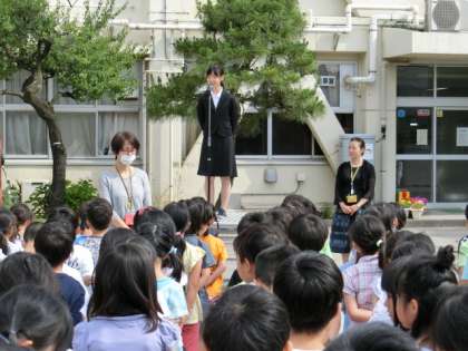 また、先週で実習が終わった教育実習の先生が、下北沢小のみんなにお別れの挨拶に来てくれました。