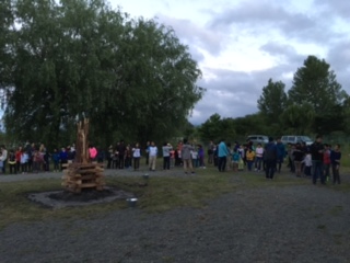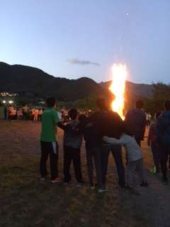お天気がよくなり、キャンプファイヤーをしました。その後、花火を見て楽しみました。